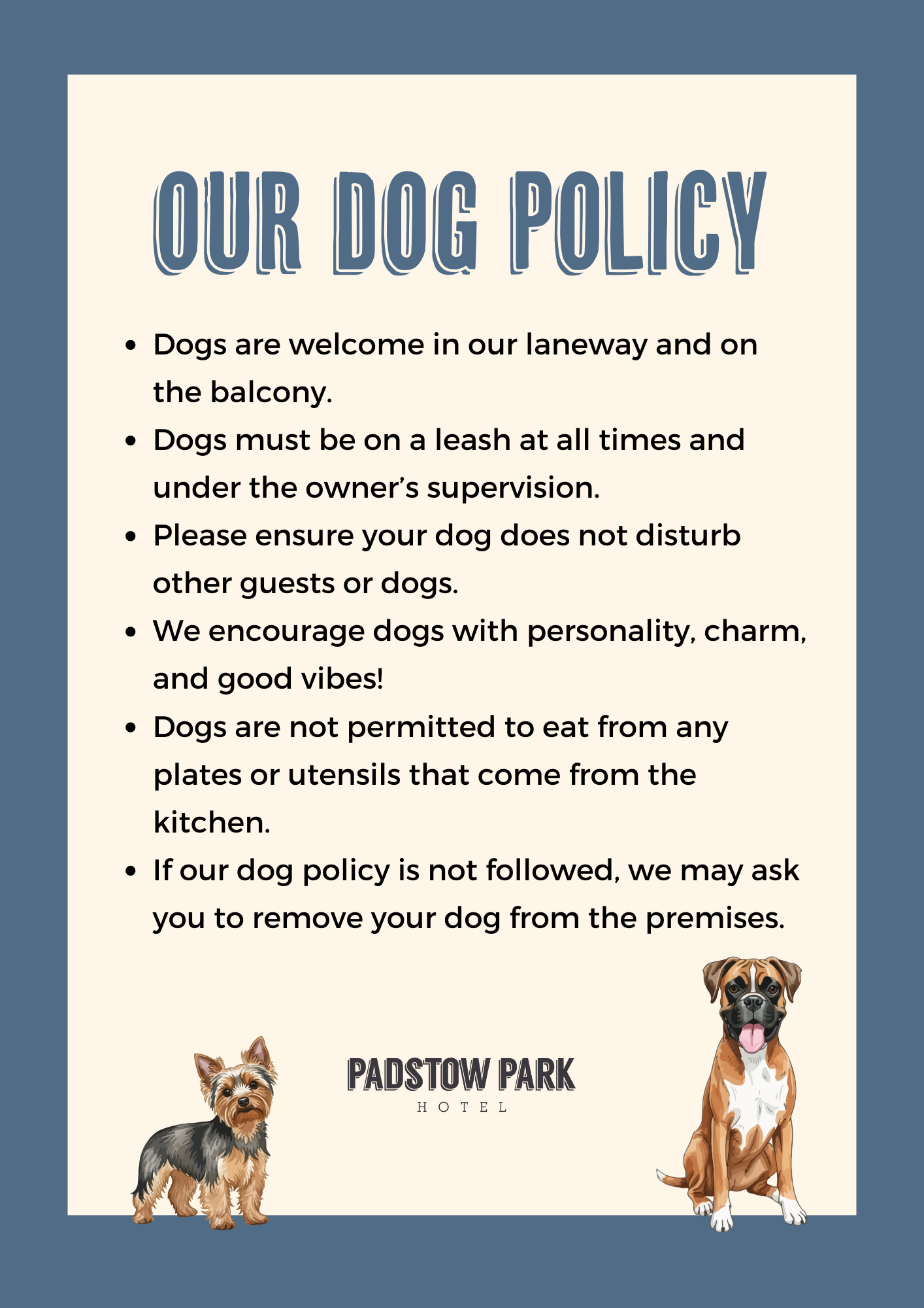 We’re Dog Friendly! Download our dog policy here.